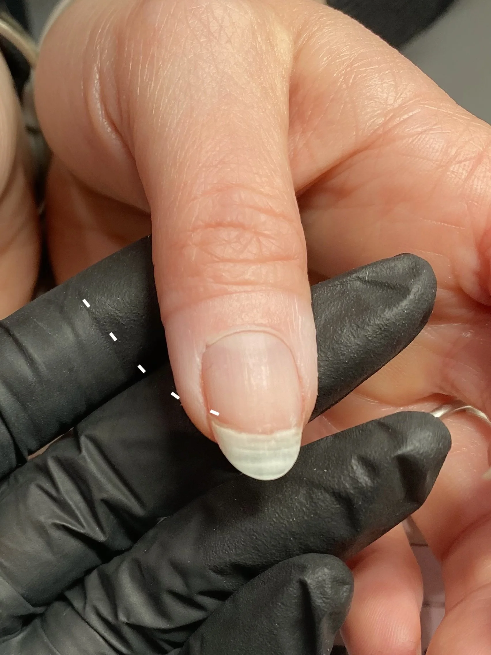 This kind of damage is usually caused by something accidental - maybe you caught a nail at the gym, used your nails to open a package, or forgot to wear gloves while cleaning. It happens! But it’s good to know how to deal with it until you can get back into the salon.